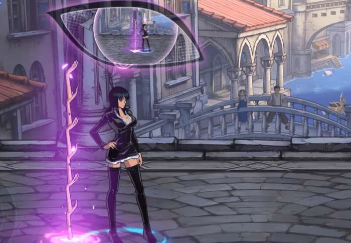 罗宾的“翅膀”在短按后,可以让自身在翅膀的助力下旋转起跳,并将敌人击飞到空中,在这个飞行期间可闪避飞行道具,她的“白目开花”一段能快速后撤转身,在转身期间能闪避飞行道具,并在后撤前的位置留下一束长有眼睛的手臂。