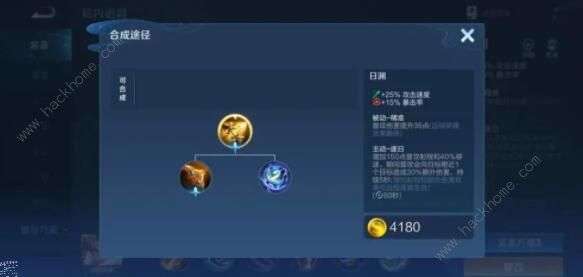合成后效果:提升英雄25%攻速和15%暴击,同时获得被动精准和主动逐日效果。