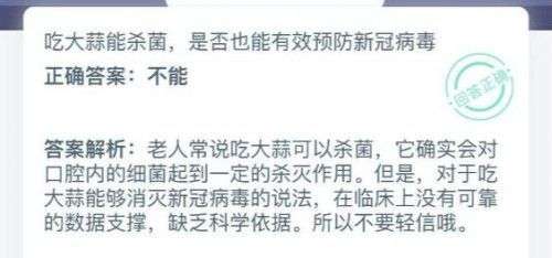 答案解析:大蒜的杀菌作用只是普通的病毒细胞,对冠状病毒没有消灭的作用,目前也没有临床证明吃大蒜可以防止新冠肺炎。