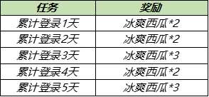 活动期间累计登录5日,总共可获得冰爽西瓜*12