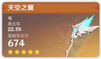 推荐度:SS (6星神器,除了主C的甘雨毕业武器是阿莫斯,没有哪个主C的弓箭角色不缺一把天空之翼!适用于主C和副C皇女)