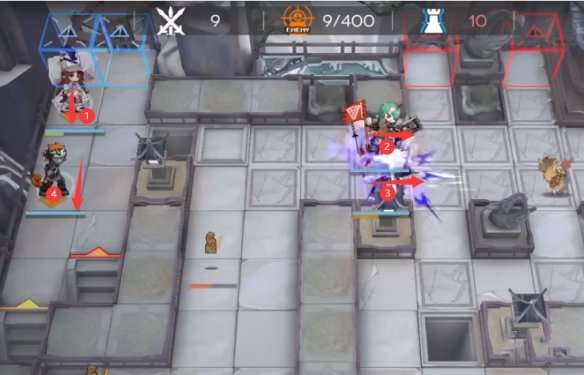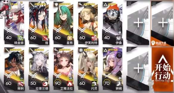 开局下先锋产费,然后正面部署重装+近卫。第二波产费后后面部署伊桑来清理衍生物。