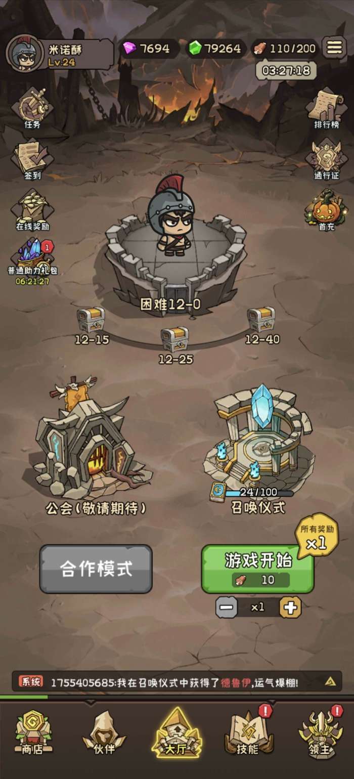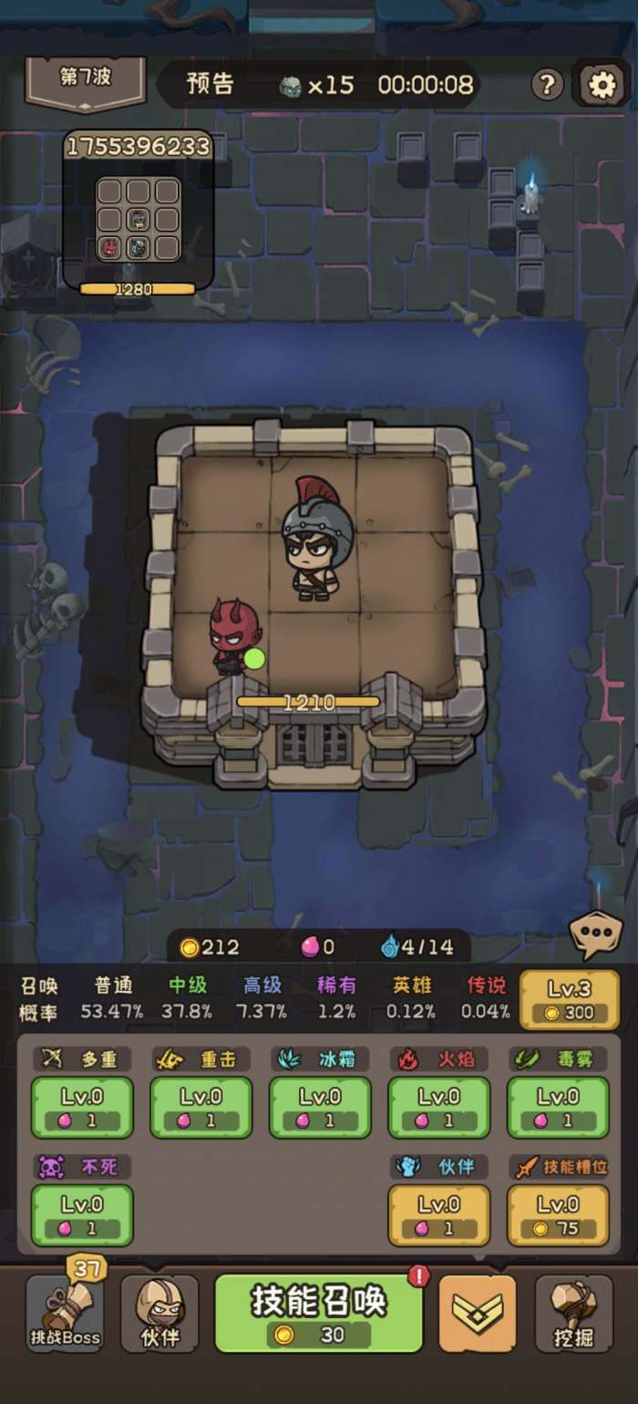 抽卡比较非,只有恶魔一个伙伴,技能也只解锁到橙色,但目前是完全够用的。