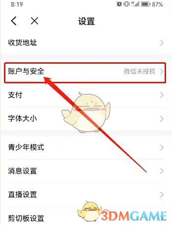 2、点击【账户与安全】进入
