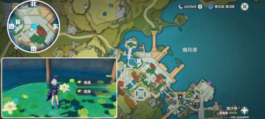 来到璃月港左下方的锚点后朝小地图西偏北方向,在这里有很多莲蓬,采完莲蓬回去交给璐璐即可