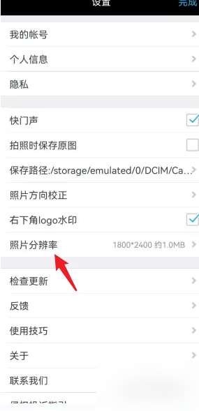 3、进入设置里面,点击设置照片分辨率就行了,如下图。