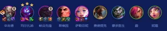 2、7级有炼金蚂蚱即可锁血上八,八级搜出阵容全员两星,数量多可追马尔扎哈三星。最终上九补任意五费卡。