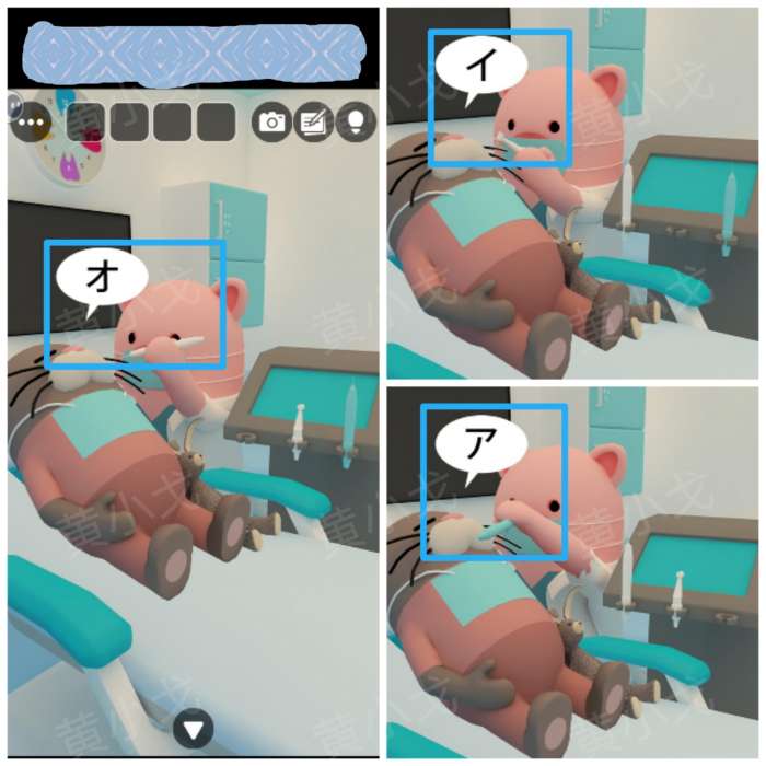 [治疗室右]猫猫提供的文字和对应的工具:白高-才、白低-亻、蓝高-ア