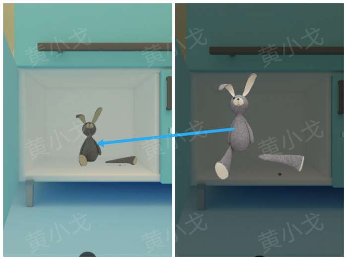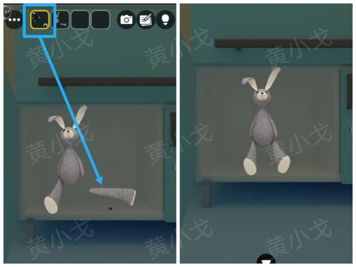 23.用【针线和剪刀】将【兔子玩偶】的腿缝起来