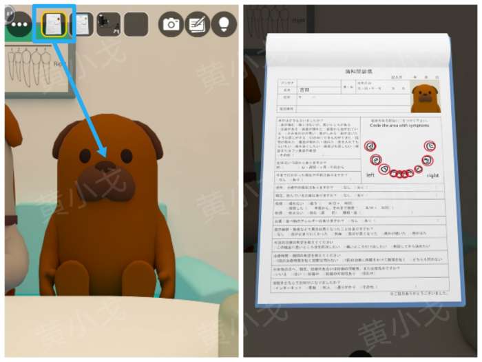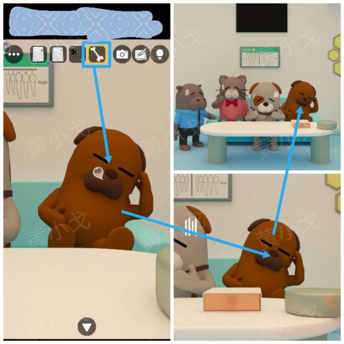 软件提交 专题合集 热门手游本篇给大家带来了“黄小戈的魔法盒子”分享的Escape Room:Dental(密室逃脱:牙科诊所)攻略(二),在问诊台点击睡着的狗狗,拿【骨头】给它,狗狗醒来。拿【填好的问诊单】给熊医生,熊医生带病人进治疗室。