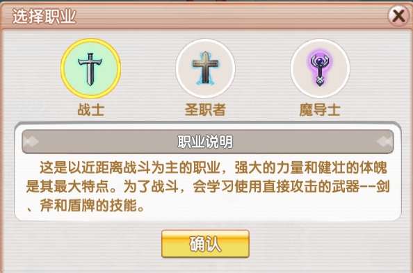 游戏还原最初版本,仅提供战士、法师、圣职者三个职业。战士是首选。这个职业刷怪效率高,武器也容易获取,能够快速积累资源;法师因为技能有前摇,需要1秒多的释放时间,不容易抢怪,不建议;至于圣职者,拳套武器爆率不搞,不容易获取,也不太建议。