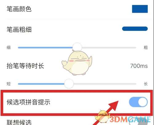 5、找到“候选项拼音提示”,点击打开开关,设置完成。