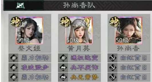 玩这套阵容站位就是基础,如果走错一步,就可以让输出断层。英雄站位上,黄月英不要站在追击格上,专心负责挂负面状态即可。孙尚香要站在黄月英的追击格上,同时还要和蔡文姬互站追击格。这样才能最大化的触发追击效果,兵种搭配也是很有讲究的,黄月英下面就可以放一个五斗米祭,如此就能有效保障队伍的续航,蔡文姬前面一列安排两个西凉骑兵作为前排,可以有效抵抗伤害,让蔡文姬就能稳定的放技能。主要的核心就是靠三个女将的组合,然后吃满金国宝物的加成。