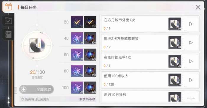 日常任务是玩家每天必须要完成的任务每天凌晨2点刷新,保证玩家每天在游戏中可以稳定的获得經驗。玩家只需要获得100点积分就可以获得全部的奖励,一般情况下,通过登录游戏进行几场模拟战,把体力消耗到约120点就可以完成任务要求。操作简单,可以获得约1500点经验值,对新手和中期玩家来说,这部分经验值可以大大加快舰长等级的提升速度。