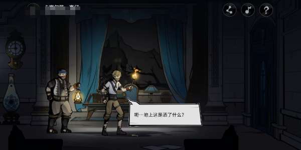 1、玩家首先进入活动中,操作盗宝团向前移动,点击调查获得钥匙。