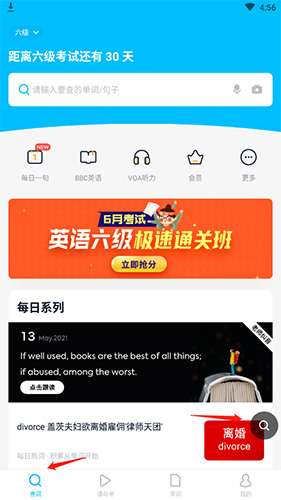 1、打开软件,点击底端的“查词”选项,然后点击右下角的“搜索”选项。