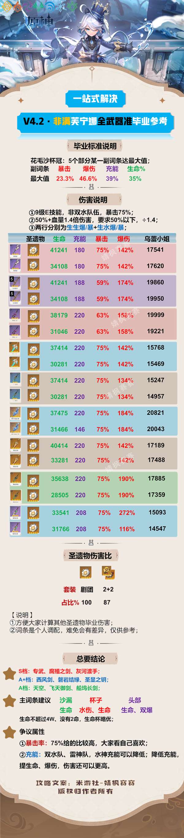 以上是小编为各位带来原神4.2芙宁娜非满命全武器毕业伤害面板参考的全部内容,更多精彩游戏资讯,请持续关注pk下载。