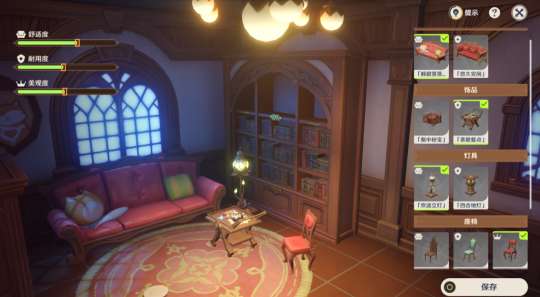 饰品选择「醇甜落落」+「茶歇餐点」+「欢适立灯」+「食中百味」+「宏魁宝库」,属性就刚刚好。