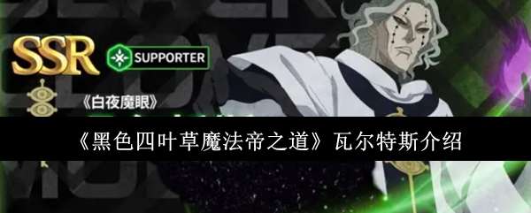 软件提交 专题合集 热门手游黑色四叶草魔法帝之道瓦尔特斯怎么样?在黑色四叶草魔法帝之道这款游戏里面,其实大家遇到的瓦尔特斯这个角色,他也叫做凡尔托斯,黑色四叶草魔法帝之道瓦尔特斯怎么样当中,关于他目前在游戏当中还被大家叫做白夜梦魇的一个SSR效果,其实其实这个角色能够带到的核心效果,就是可以大幅增加我方其他队友的行动能力。