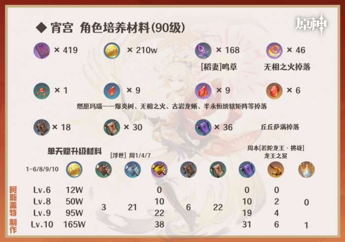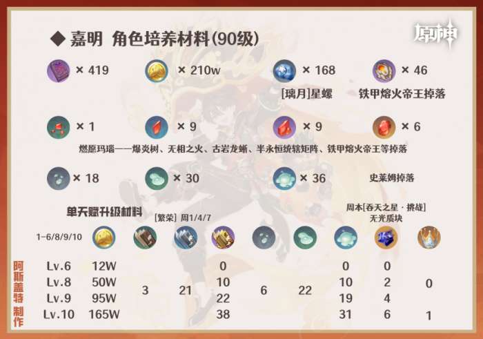 软件提交 专题合集 热门手游本期是一篇关于【原神】全部火元素角色的一图流培养