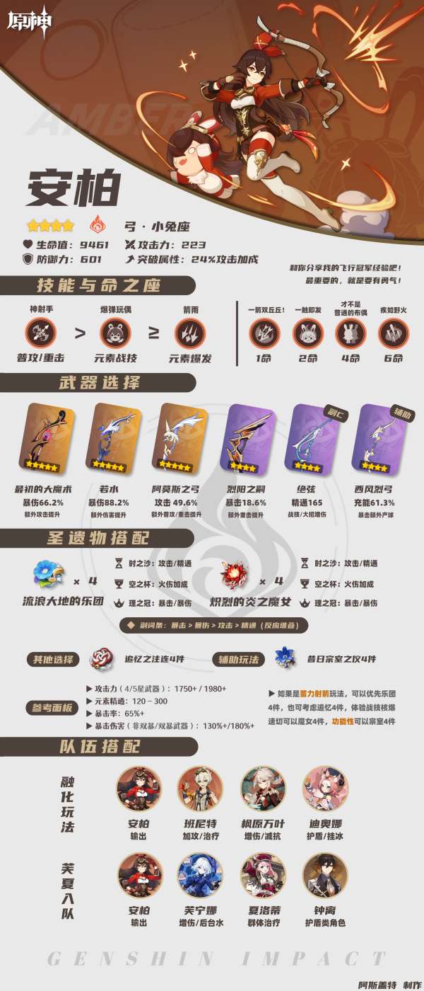 ⑤安柏的1、2、4、6命在各个玩法都有不错的提升,1命适合蓄力射击、2&4命对于战技核爆玩法比较不错、6命适合辅助队伍。