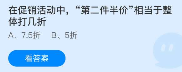 1、题目:在促销活动中,“第二件半价”相当于整体打几折