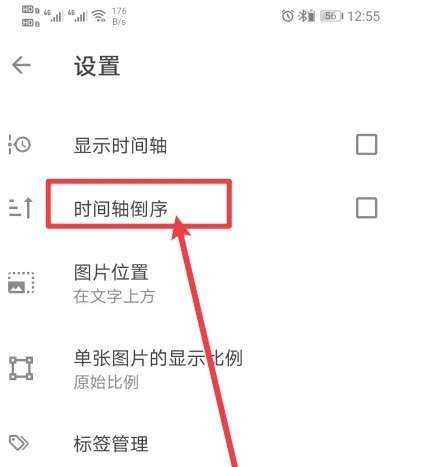 点击【时间轴倒序】,完成具体设置即可。