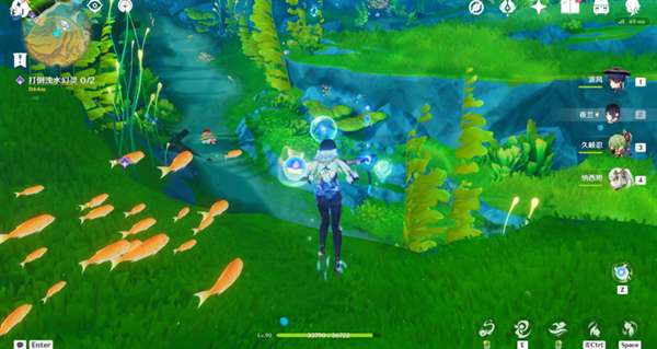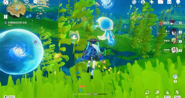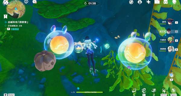 今天的线索挑战有两种类型:一种触碰线索光球后,需要使用异色水母的能力,将黄色的果实打没,就可以完成挑战。