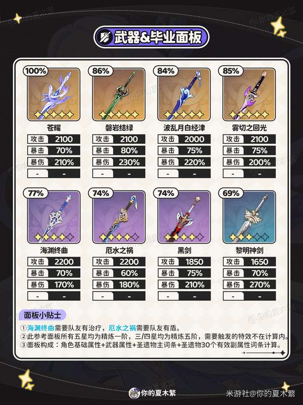 五星:苍耀(专武)>磐岩结绿>雾切之回光>波乱月白经津>赦罪