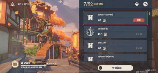 完成《冒险家···该干嘛?》任务后,旅行者可以前往「璃月总务司」干事·小雨处,获得声望值+20