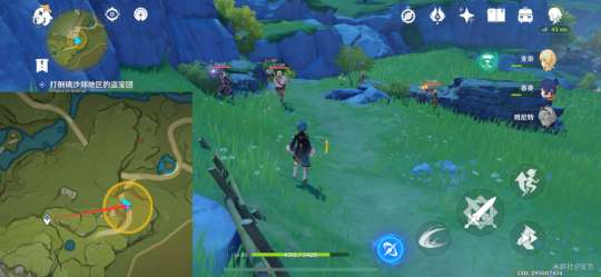 完成清剿后,返回璃月港,向甜甜汇报情况,然后接第二个委托,还是在璃沙郊,清理盗宝团