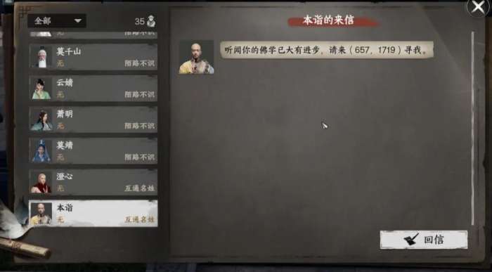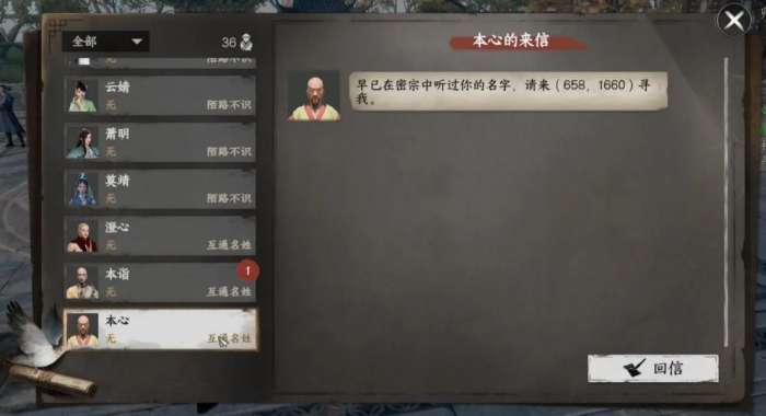 继续完成悬赏任务,等到你的好感度提升至50点时,再次查看飞鸽传书,前往本诣处完成“晋升关门弟子”的任务。这一次,你将被传送到坪垆北,并与看守NPC反复对话。完成这些对话后,去找澄心,跟她聊一聊,完成任务后,你就会晋升为关门弟子。