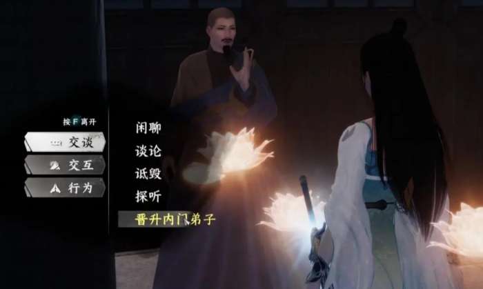 当你的好感度达到25点之后,飞鸽传书的指引就会带你去与本诣再次对话,直接选择“晋升内门弟子”后,接受任务并回答几个问题,最后便能顺利晋升为内门弟子。这时,你还会得到一项新的技能——“惊武回风拳”,它将为你在接下来的战斗中增添不少火力。