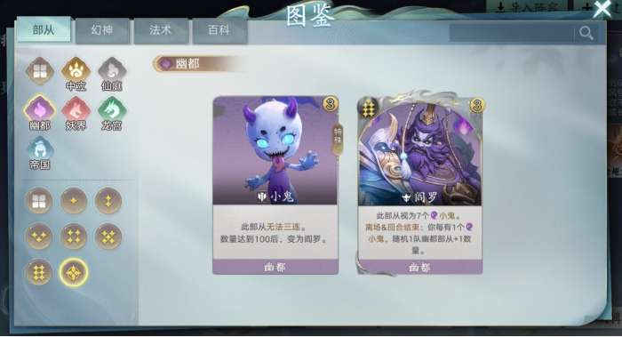 【小鬼】是地府的特殊部从,不仅可以上场作为战士提供战力,还可以出售作为经济资源,最重要的是:数量达到100后ta将变成幽都最高战力:阎罗!