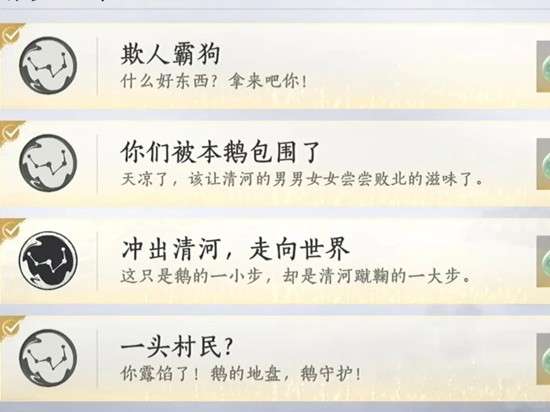 ⑥成就六“是天命鹅不是天鹅”:在屋顶找到鸽子窝,用【鹅叫】技能吓鸽子获得金蛋,可完成任务。