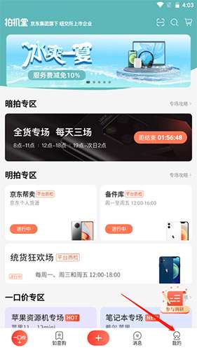 1、点击拍机堂右下角我的按钮