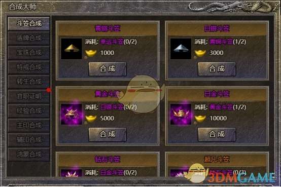 斗笠、护盾、治疗宝珠和特戒都可在合成大师处进行装备合成!