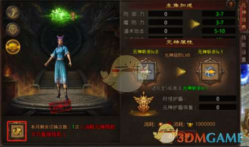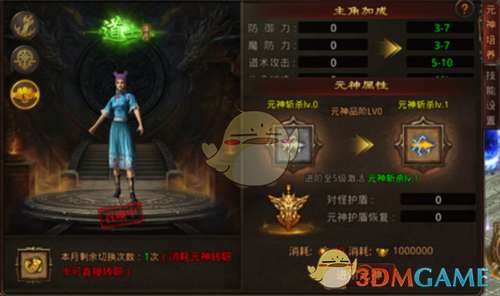 玩家每月可以免费切换一次元神职业,若在该月中仍想切换元神职业则要消耗元神转职卡。