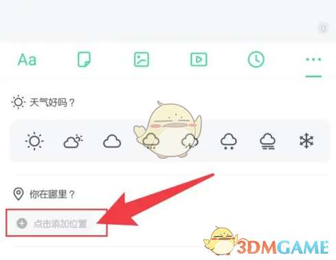 软件提交 专题合集 热门手游在吾记app中添加定位,可先打开应用并进入写日记界面,点击界面右下角的加号图标,接着点击弹出的三个点图标,在随后出现的窗口中选择“添加位置”,应用便会根据手机定位自动获取当前位置信息并添加到日记中。