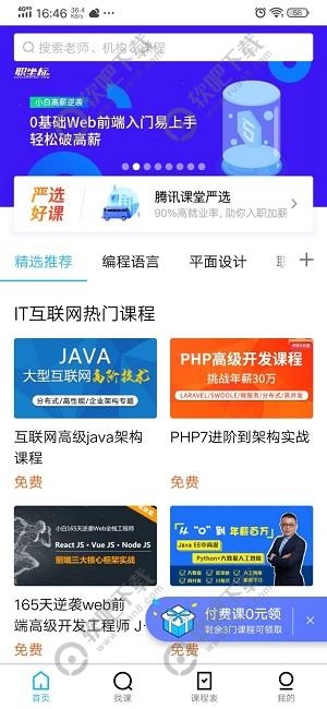 3、登录后即可进入软件界面,在软件界面选择自己感兴趣的课程进行学习即可,也可以输入课堂的ID号码进行搜索进入相应的课堂。