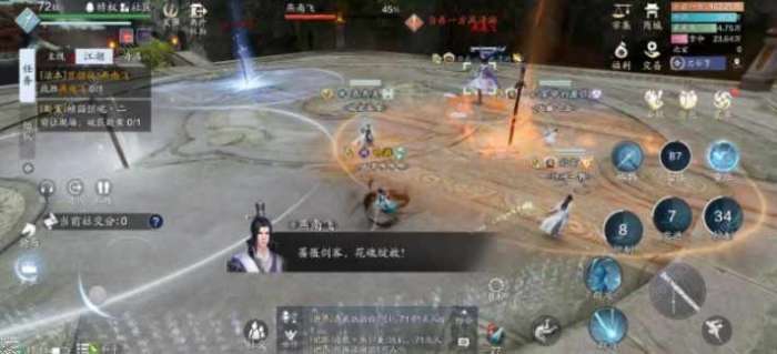 血量50%后进入第三阶段,燕南飞将召唤冰、火、风三剑,在此期间燕南飞无法被攻击。虽然剑阵的样子的确壮观,但要破阵也非常简单。
