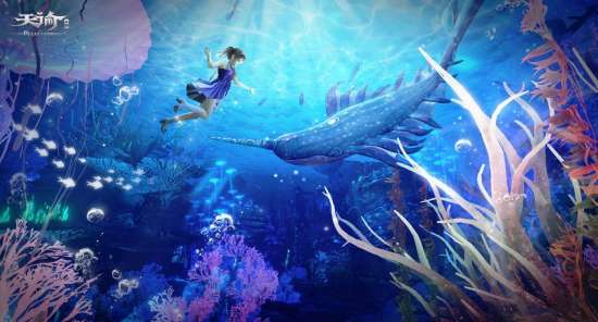 在这里,你可以潜入深海世界,寻觅瑰丽与神秘。汐愿之海分为浅中深三层海域,有平缓的海沙,也有地震留下的缝隙;有光线明亮的浅海,亦有幽暗可怖的深渊,极致还原了多样真实的海底地貌。此外,汐愿之海拥有30余种珊瑚,80多类鱼种,冒险家们不仅能随处打卡海洋奇观,还能与玄龟玄鲸等互动游玩,增添深海旅程的乐趣。