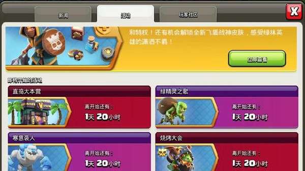 部落冲突即将在之后开放多个全新活动,包括寒意袭人、直捣大本营、绿精灵之歌、烧烤大会等。
