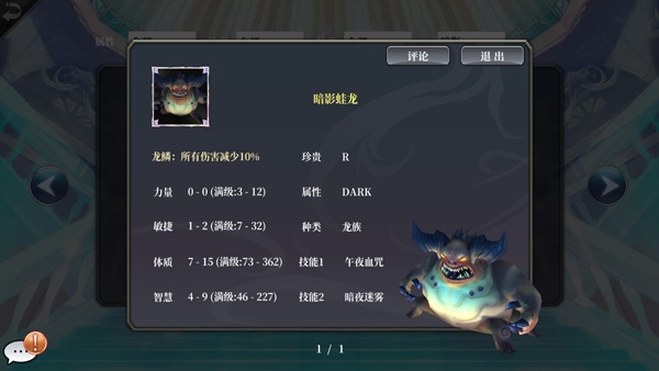 乍一看这货的定位似乎十分尴尬,虽然是很强力的牧师成长却是个近战,实际上这货是目前版本最好用的肉。龙族的龙鳞被动描述和以前版本一样,但是实际上在351版本之后龙鳞被动得到了加强。目前龙鳞的效果是10%的(物、魔)穿透抵抗,相当于降低敌人的穿透值,对于肉来说十分有用。227的最高智力能提供强力的血量、魔抗补正。(补正提供的魔抗不显示在面板,测试后类似于伤害减免,此外,类似魔法反射、反击盾甲、舍命技能描述中的“所受某种伤害大大增加”也是不显示在属性面板的,只有伤害计算时才看得出,关于宠物补正有不懂的看这篇帖子:宠物补正系统)补正的存在弥补了守卫魔抗的弱点,因此蛙龙是现版本最为全能的第一肉。