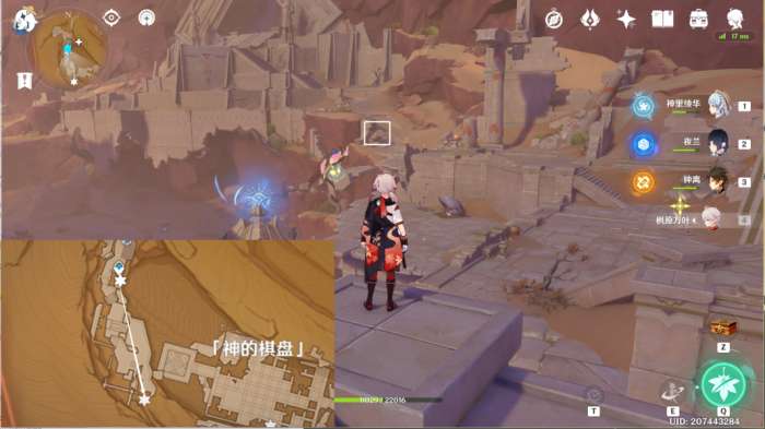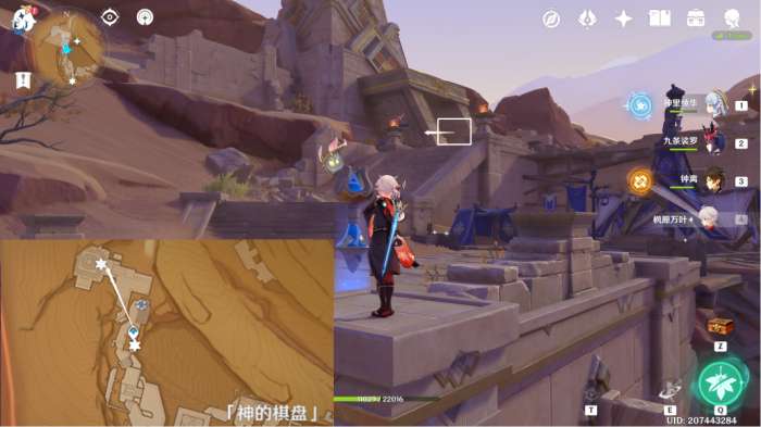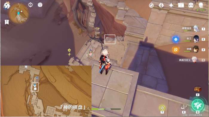 传送神的棋盘图中锚点,往地图的东南方向飞,利用四叶印,前往图中指引圆形石柱位置