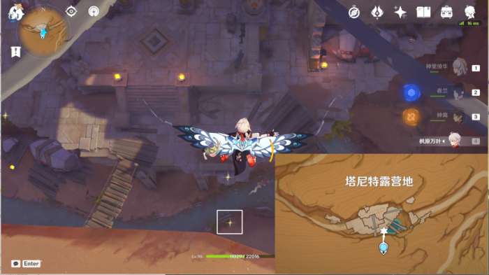 传送塔尼特露营地神像,往地图的北方向下飞,前往图中指引四叶印位置