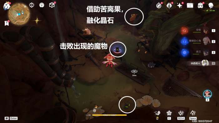 (12)来到标记位置,用草元素攻击巨石,宝箱就在下面