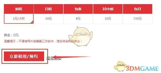 3、预约账号默认最低租用时间是3小时或以上,号主开启预约才可以预约,不开启则不显示预约字样,预约最低要提前2小时预约,手游无法进行预约,出租中的账号也可选择预约,最多只能预约3天内的时间段,预约订单解锁码只有到预约时间才能解锁使用。