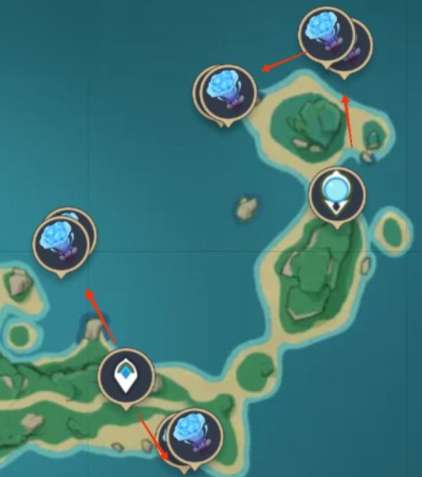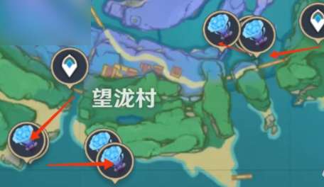 数量:7个,望泷村左下采集点处于上层沙滩左右两侧,右边的传送锚点旁的采集点位于山下方。