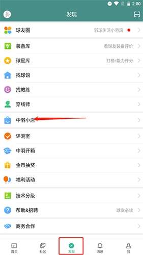 1、在发现栏目中选择中羽小店